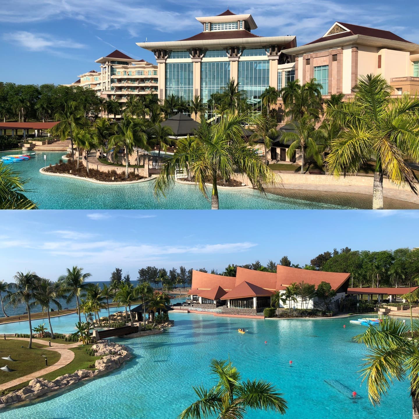 海岸沿いに建ち、かつてはブルネイの迎賓館として使われてたこともあるエンパイア・ホテル。イタリアの大理石、装飾には24金も使われている豪華さです。敷地内には18ホールのゴルフ場、映画館、ボーリング、バトミントン、ジム、スパ、7つのプールにレストランを完備しています。アフタヌーンティーは有名で、宿泊客以外でも楽しむことが出来ます。コロナでサービスが縮小したのが残念です。